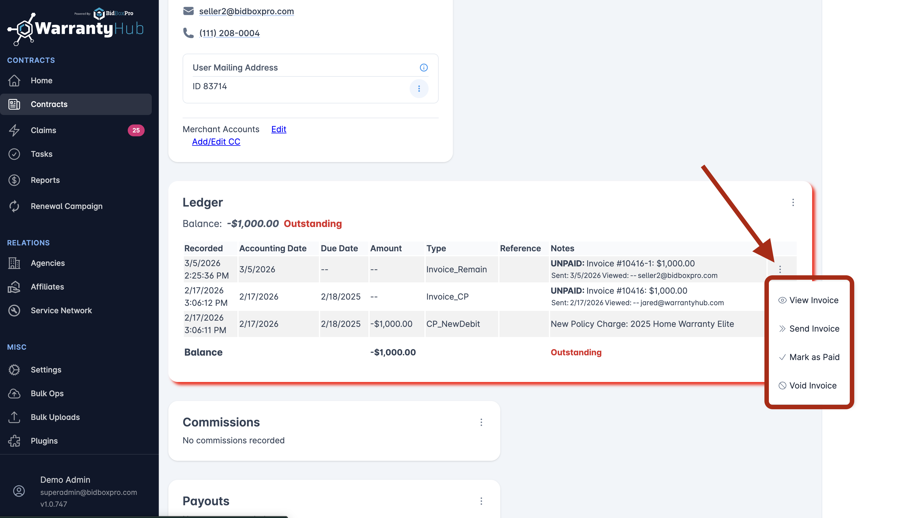 - Void Invoice: If an invoice was created in error or is no longer valid, the ‘Void Invoice’ option can be used to cancel it out. This should be used sparingly and only when absolutely necessary, as it affects financial tracking.